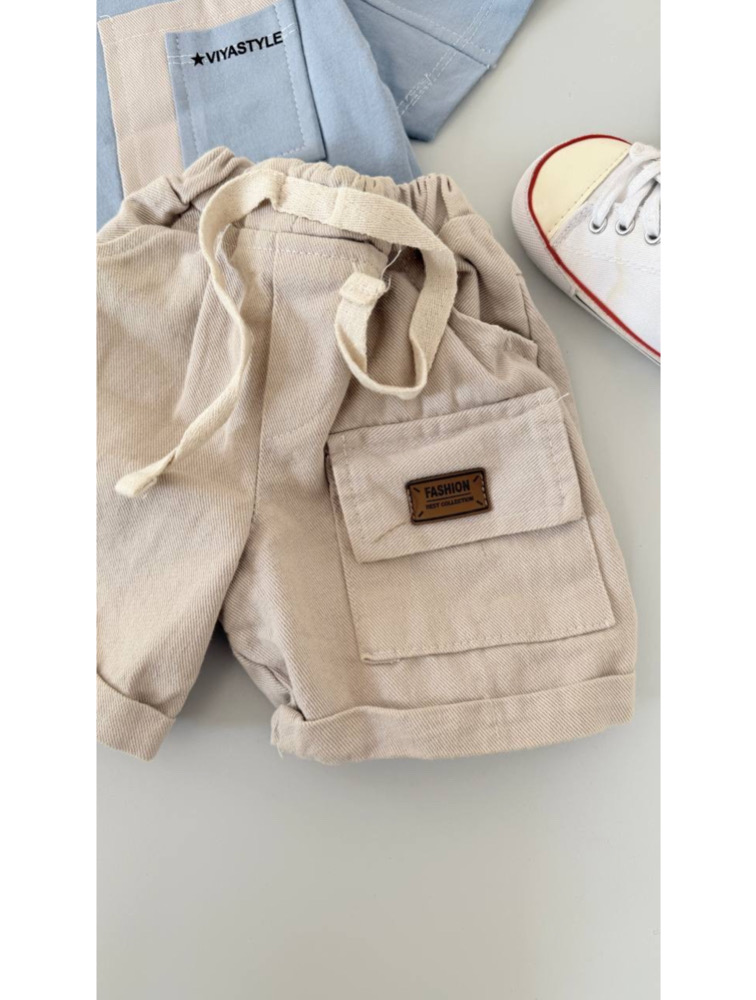 ست تیشرت شلوارک جیب دار آبی آسمانی
