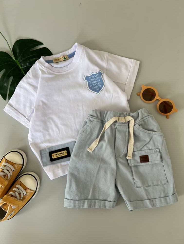 White and blue pocket t-shirt and shorts set