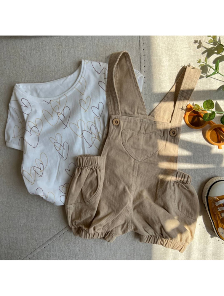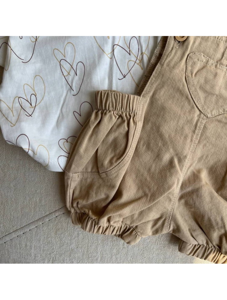 ست تیشرت و بیلر کرمی طرح قلب