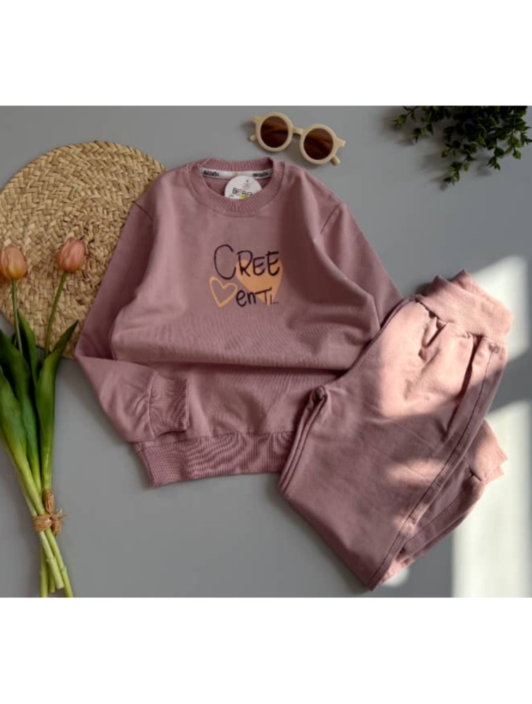 ست دورس و شلوار صورتی طرح قلب