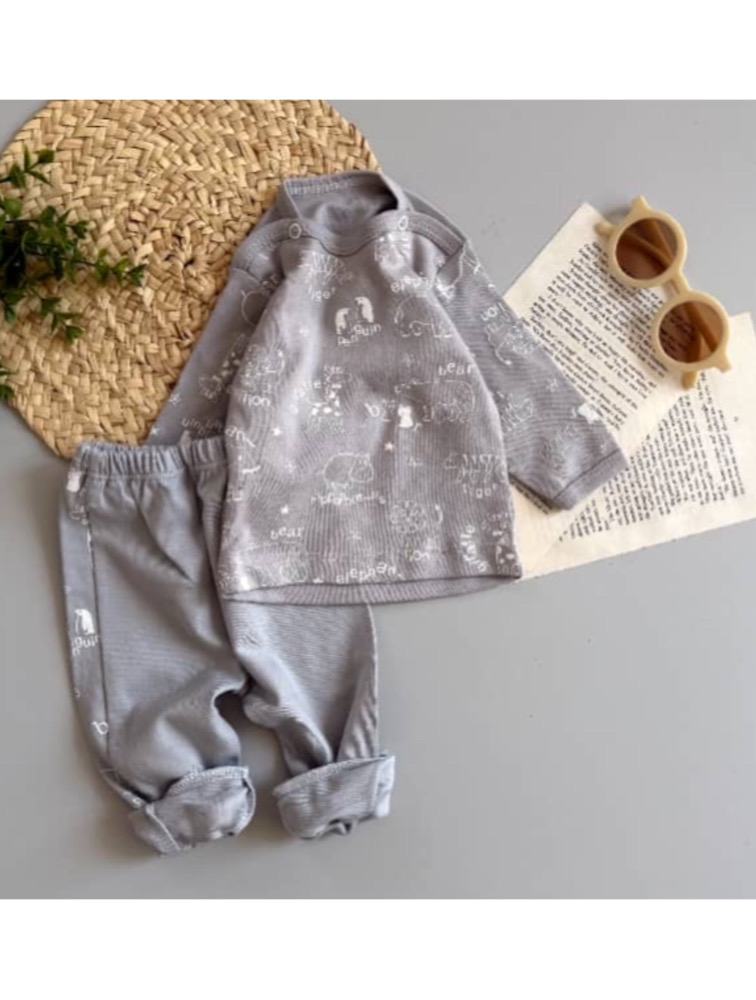 ست بلوز شلوار طوسی طرح حیوانات