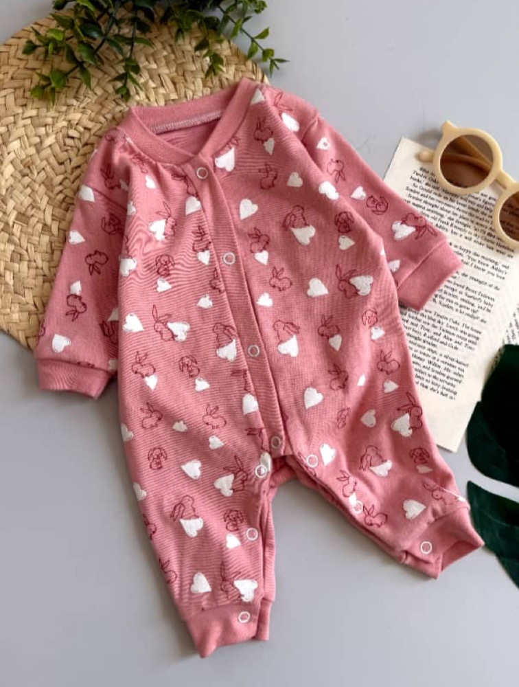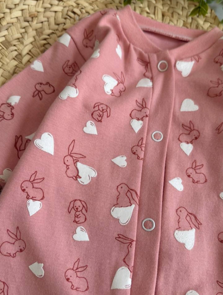 Pink jumpsuit with rabbit and heart design