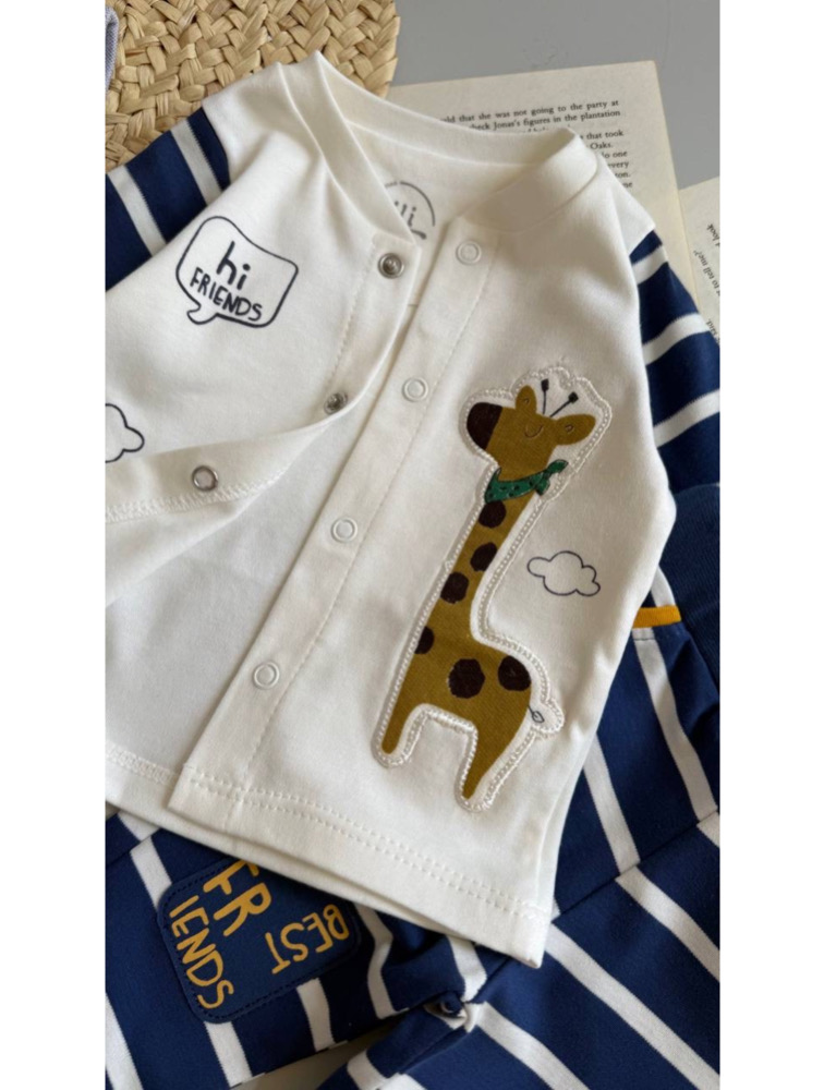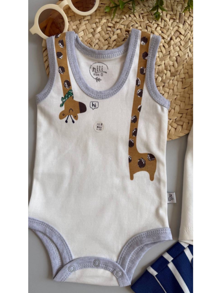 Three-piece indigo giraffe design