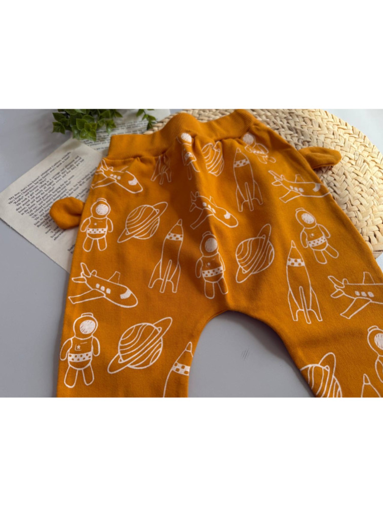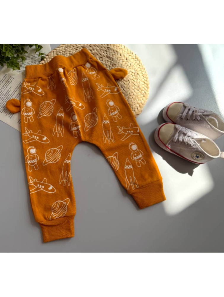 شلوار دوفاق خردلی طرح دار