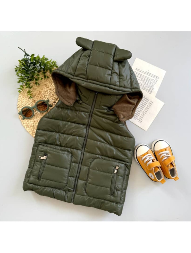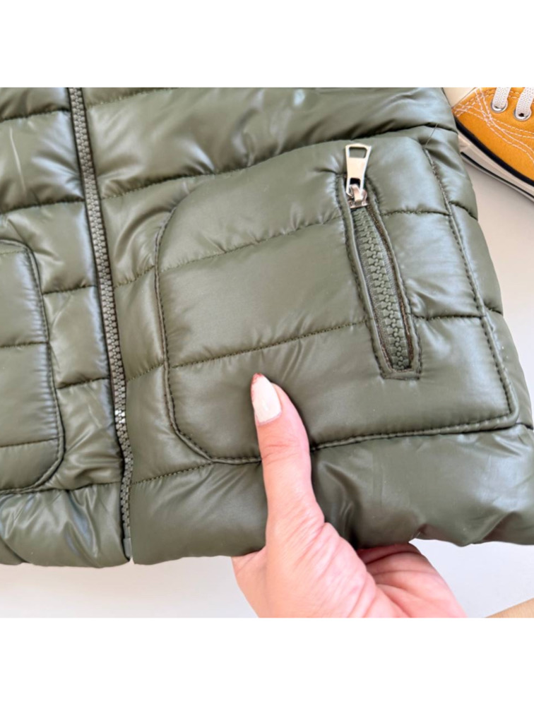 Green puffer with rabbit hat