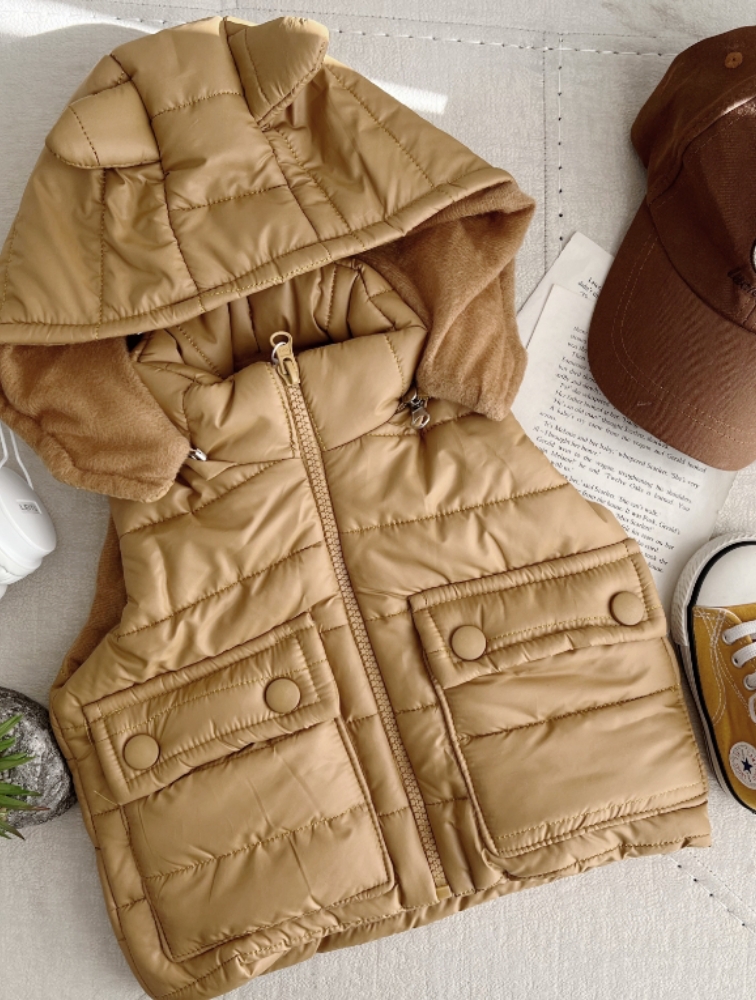 پافر کلاه خرگوشی جیب دگمه خردلی