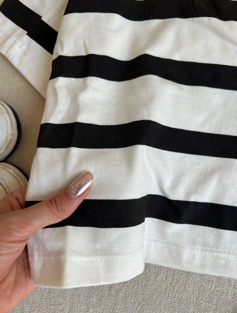 Black striped t-shirt and shorts