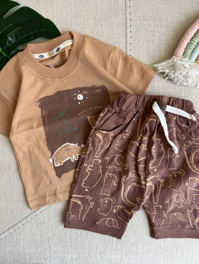 ست تیشرت و شلوارک طرح حیوانات جنگل