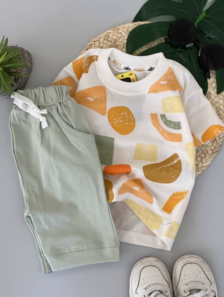 Pastel green geometric pattern sports two-piece