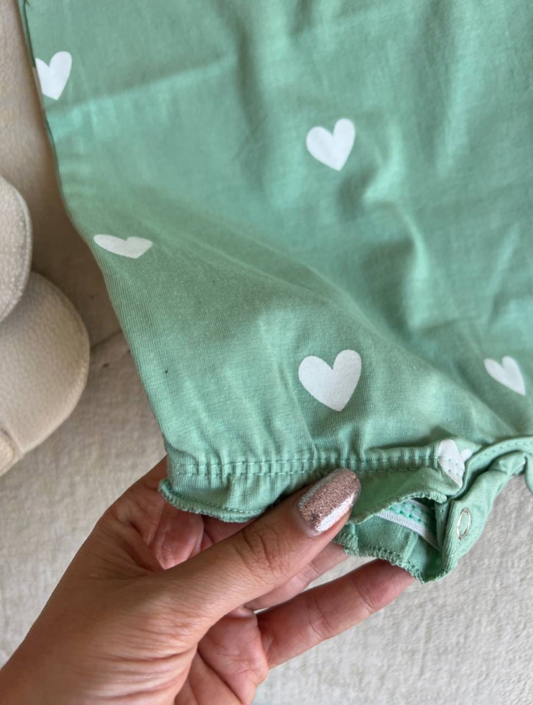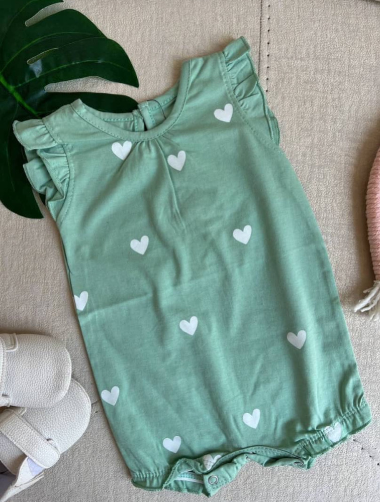 Pastel green heart pattern romper